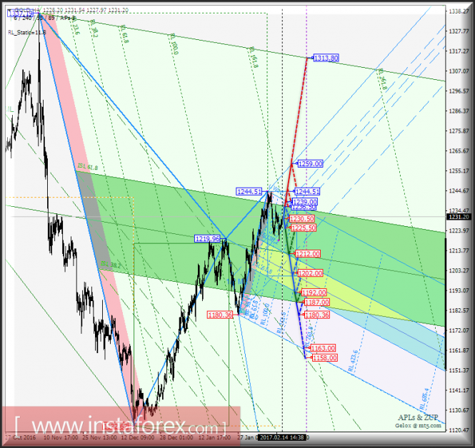 Развитие движения цены инструмента (Gold Spot) в период 15_28 февраля 2017 г. будет обусловлено отработкой границ канала 1/2 Median Line (1236.00 <-> 1230.50 <-> 1225.55) и зоны равновесия (1212.00 <-> 1202.00 <-> 1192.00) вил операционного масштаба Minuette находящихся внутри границ зоны равновесия (1236.00 <-> 1212.00 <-> 1187.00) вил операционного масштаба Minute.