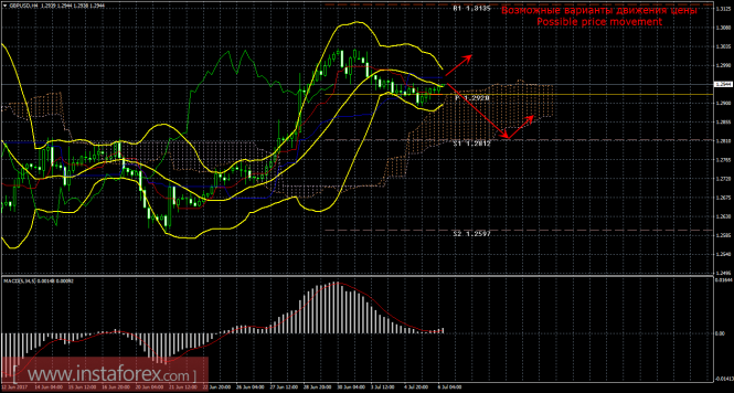 Красная линия и гистограмма с белыми барами в окне индикаторов.Материал предоставлен компанией InstaForex - www.instaforex.comТехнический анализ и торговые рекомендации по валютной паре GBP/USD на 6 июля 2017 года