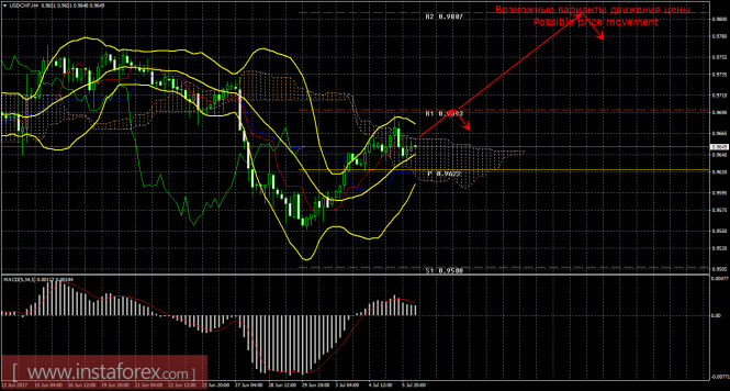 Красная линия и гистограмма с белыми барами в окне индикаторов.Материал предоставлен компанией InstaForex - www.instaforex.comТехнический анализ и торговые рекомендации по валютной паре USD/CHF на 6 июля 2017 года