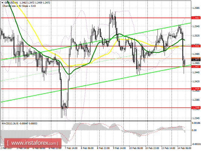 Покупатели британского фунта сумели удержать уровень 1.2457, на который я обращал внимание в утреннем обзоре. Однако более крупной восходящей тенденции от него пока не произошло, что наводит на мысль на уход покупателя в район 1.2409 или даже к 1.2368. Именно на этих уровнях можно вновь подумать о длинных позициях по фунту. Если же повторный тест 1.2457 не приведет к пробою этого уровня, а комментарии Джанет Йеллен окажут давление на доллар США, можно ожидать повторного возврата GBP/USD в район 1.2502 и 1.2563.