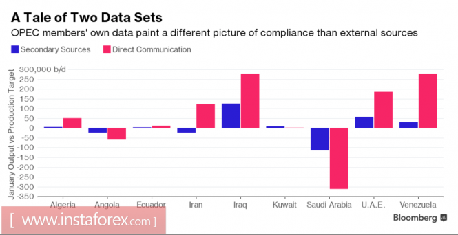 По мнению ОПЕК, если страны-участницы венского соглашения о сокращении добычи будут вести себя так же, как в январе, то рынок будет сбалансирован быстрее, чем ранее ожидалось. В то же время анализ динамики глобальных запасов, наоборот, убеждает, что аналогичных январскому разрезов будет недостаточно, чтобы выйти на баланс к середине 2017. Инвесторы анализируют статистику МЭА, картеля и независимых источников, находя в ней немало противоречий.