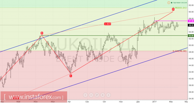 Технически без выхода за пределы торгового диапазона $52,9-57,3 за баррель говорить о продолжении ралли в направлении таргета на 161,8% по паттерну AB=CD или о развитии коррекционного движения преждевременно.