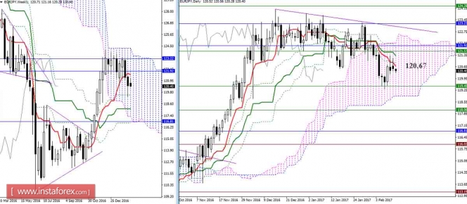 Уровни поддержки и сопротивления – красные горизонтальные линии.Материал предоставлен компанией InstaForex - www.instaforex.comДневной обзор GBP/JPY и EUR/JPY на 14.02.17. Индикатор Ишимоку