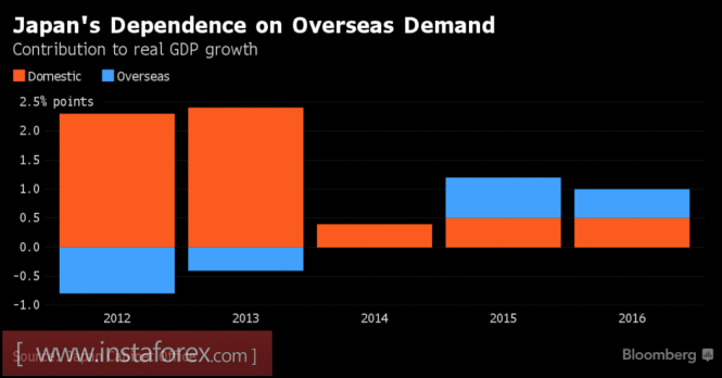 В частности, JP Morgan утверждает, что именно политика станет главным драйвером изменения котировок USD/JPY в 2017 и прогнозирует падение пары к психологически важной отметке 100 иен за доллар. Как показал последний релиз данных о ВВП Японии, около половины прироста экономики в четвертом квартале 2016 было связано с внешним спросом, в то время как внутренний остается слабым. Чистый экспорт в октябре-декабре добавил к ВВП 0,2 п.п, при этом вялый рост заработных плат продолжает ограничивать внутреннее потребление.