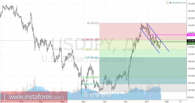 Материал предоставлен компанией InstaForex - www.instaforex.comВолновой анализ валютной пары USD/JPY за 14 февраля 2017 года