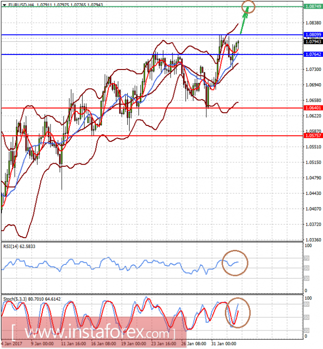 Пара EURUSD торгуется выше уровня 1.0765, и если выступление М. Драги будет оптимистичным и дающим надежду, что позиция ЕЦБ в отношении мягкой денежно-кредитной политики может в этом году измениться, то пара после прорыва уровня сопротивления 1.0810 может вырасти к 1.0875.