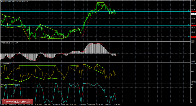 Котировки пары выполнили закрепление под коррекционным уровнем 23,6% - 113,99. В итоге падение пары может быть продолжено сегодня в направлении следующего уровня коррекции 38,2% - 106,66. Назревающих дивергенций сейчас не видно ни у одного индикатора. Закрепление курса пары над уровнем Фибо 23,6% вновь позволит трейдерам рассчитывать на разворот в пользу валюты Соединенных ШТатов и возобновление роста в направлении коррекционного уровня 0,0% - 125,82.