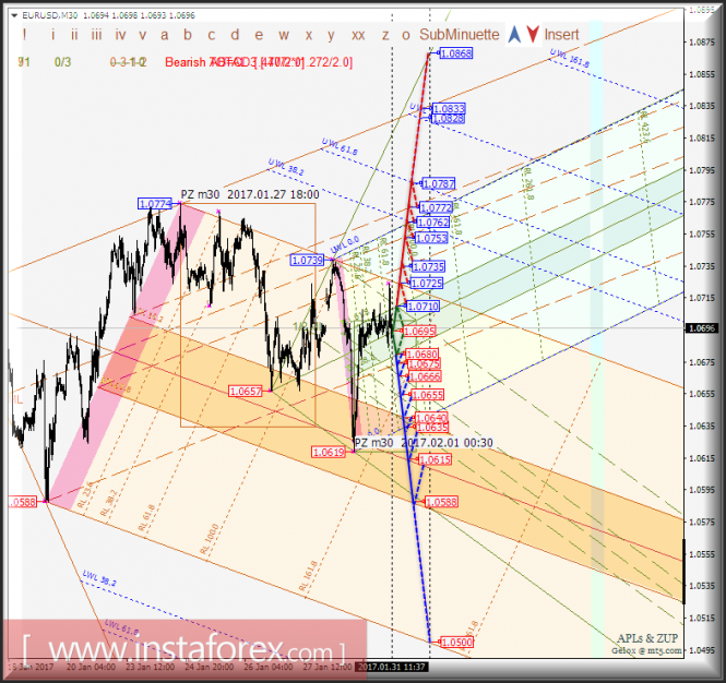 EUR/USD m30. Развитие движения в период 31 января - 02 февраля 2017 г. Анализ APLs & ZUP