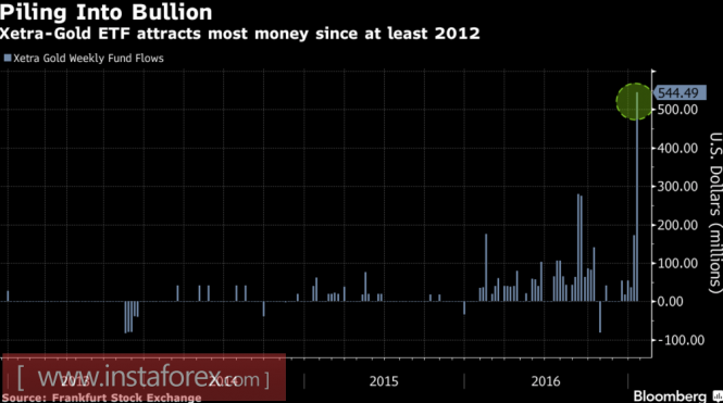По мнению HSBC, северный поход драгметалла с высокой долей вероятности продолжится. Часть полпредов команды Трампа отдают предпочтение свободной торговле и снижению налогов, что можно расценивать как нейтральный фактор для XAU/USD. Другая часть настроена на политику протекционизма и увеличения бюджетных расходов, что следует расценивать как «бычий» фактор для золота. К неопределенности, связанной с политикой нового главы Белого дома, следует добавить Brexit и риски выхода Франции из состава ЕС в случае победы лидера Национального фронта Марин Ле Пен на президентских выборах. Немудрено, что европейские специализированные биржевые фонды накапливают запасы гораздо быстрее американских. Так, приток капитала в немецкий Xetra Gold на неделе к 20 января оказался в 10 раз выше, чем в крупнейший ETF SPDR Gold Shares.
