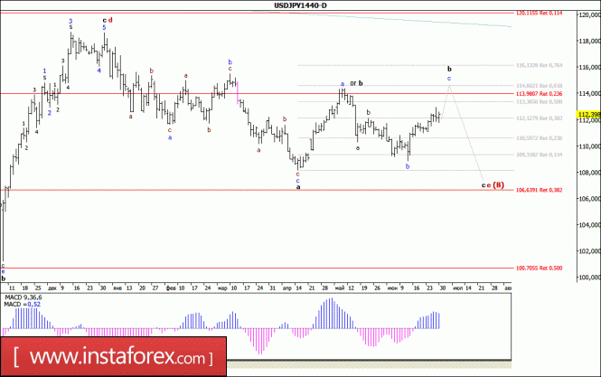 Инструмент возобновил построение волны В. На этой неделе повышение котировок может продолжиться в рамках предполагаемой волны с, в с, в е, в В с целями, расположенными около расчетной отметки 1,1471, что соответствует 200,0% по Фибоначчи, и выше около 16 фигуры. Волна е, в В усложнила свою внутреннюю структуру. После завершения этой волны ожидается протяженное снижение в рамках волны С.Материал предоставлен компанией InstaForex - www.instaforex.comФиксация прибыли переносится... на понедельник?