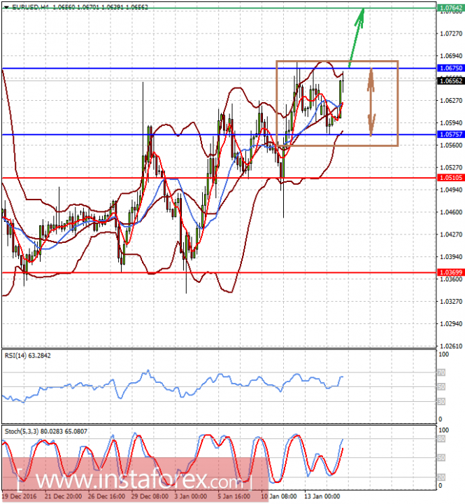 Пара EURUSD торгуется в скорректированном диапазоне 1.0575-1.0675. Если Т. Мэй подтвердит жесткий курс на выход Британии из ЕС, то евро, выполняющий своеобразную функцию валюты-убежища, может получить поддержку и на прорыве уровня 1.0675 может продолжить расти к 1.0765. Но если выступление не будет таковым, тогда пара может остаться в нынешнем диапазоне.