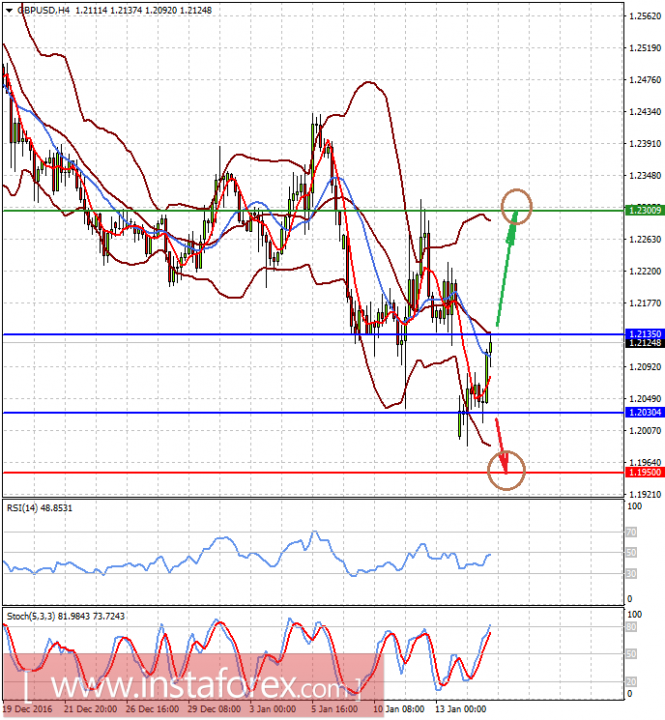 Пара GBPUSD, так же как и EURUSD, будет реагировать на выступление Мэй. В мягком варианте ее речи она может после прорыва уровня 1.2135 устремиться к 1.2300, но негативный комментарий опять заставит пару снижаться, и, возможно, она протестирует отметку 1.1950.