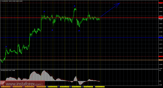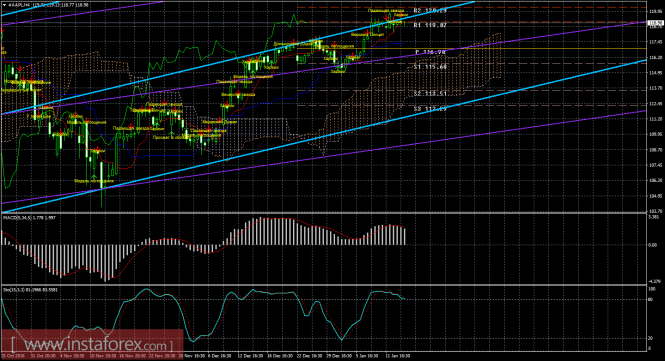 Анализируя акции Apple 16 января, видим, что цена так и не смогла уверенно преодолеть уровень 119,07. Сегодня в Америке День Мартина Лютера Кинга. Все фондовые площадки будут закрыты. Подробный анализ будет проведен завтра, когда будут получены новые уровни поддержки и сопротивления.