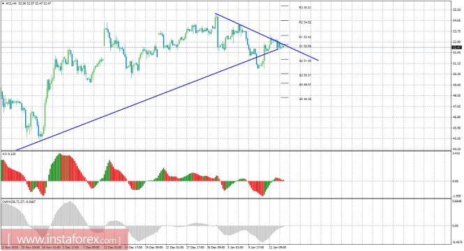 Уровни поддержки и сопротивления – красные горизонтальные линии.Материал предоставлен компанией InstaForex - www.instaforex.comТехнический анализ сырой нефти за 16 января 2017 года
