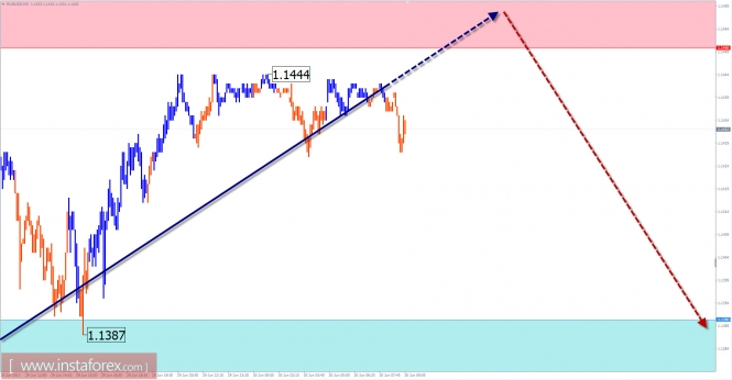 В первой половине дня более вероятна попытка давления на зоны сопротивления. Кратковременный прорыв верхней границы зоны возможен, но вероятность этого невелика. Ближе к концу дня можно рассчитывать на смену курса и ход цены пары вниз.