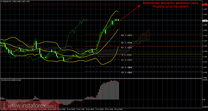 Красная линия и гистограмма с белыми барами в окне индикаторов.Материал предоставлен компанией InstaForex - www.instaforex.comТехнический анализ и торговые рекомендации по валютной паре EUR/USD на 30 июня 2017 года