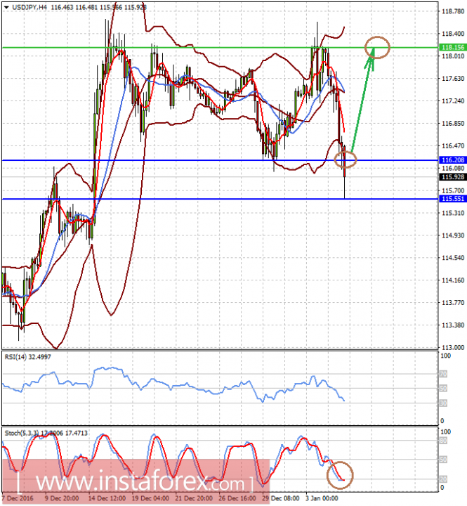 Пара USD/JPY остановила снижение, протестировав уровень 115.55. Ее рост на фоне хороших цифр от ADP может привести к подъему к 118.15 после пробития уровня 116.20.