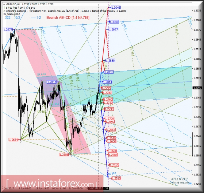 GBP/USD h1. Варианты развития движения с 28 июня 2017 г. Анализ APLs & ZUP