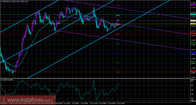 Хайкен Аши – индикатор, окрашивающий бары в голубой или фиолетовый цвета.Материал предоставлен компанией InstaForex - www.instaforex.comТехническая картина валютной пары EURUSD по системе «Каналы регрессии» за 26 июня 2017 года