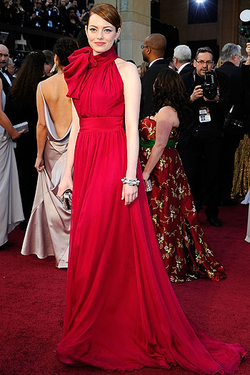 Настоящий фурор произвела рыжеволосая красавица Эмма Стоун ( Emma Stone), облачившись в ярко-красное платье с шифоновым бантом от Gianbatista Valli.