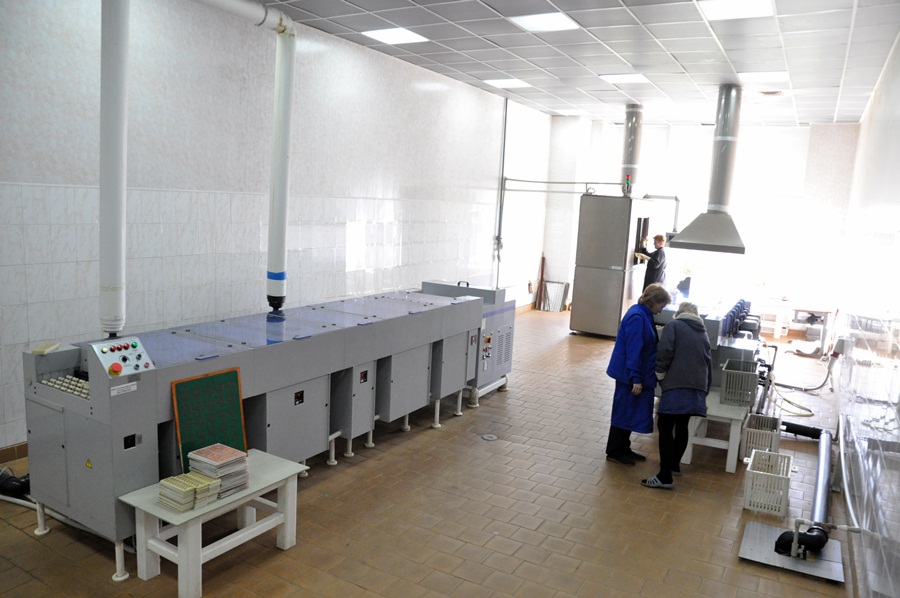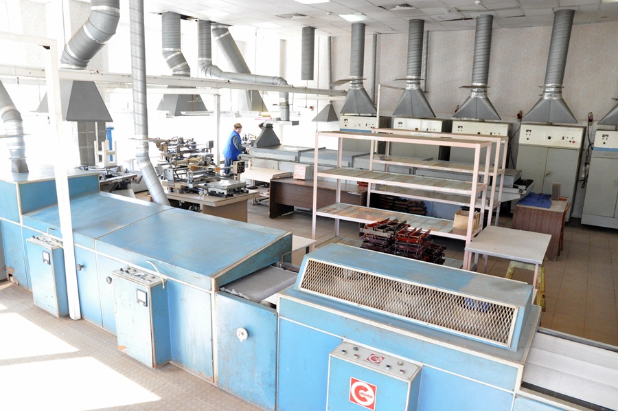 Участок шелкографии. Нанесение паяльной маски, легенды и последующая сушка.