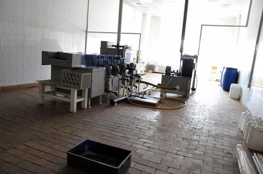 Установка подготовки деионизованной воды находится тут же. Пока не работает, но вроде скоро запустят. Производители обычных печатных плат работают на дистилированной воде, а для отмывки алокса нужна именно деионизированная.