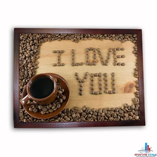 Очень оригинальный способ. Возьмите фото рамку подходящего размера, под стекло положите толстый картон, на который предварительно наклейте кофейные зерна. Все это творение застынет, и вот он Ваш поднос! Можно написать на картоне какие-нибудь приятные слова. Будет просто потрясающе.