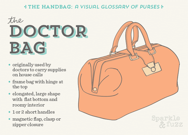 Вы, конечно же, узнаете эту форму - она неотрывно связана с докторами, откуда и ее название. Благодаря функциональности и размеру, эту сумку не могли обойти стороной модники. В большинстве случаев даже современные "врачебные" сумки сохраняют свою строгость и чопорность - никаких лишних украшений и финтифлюшек, только две короткие ручки и застежка (защелка или магнит).