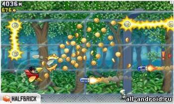 2012-09-05 00:41:55 (читать в оригинале)Jetpack Joyride - отличная динамичная игра, ваша миссия каким либо способом украсть в ученых экспериментальные джетпаки. На вашем пути будет много препятствий, собирайте монетки, чтобы потом в магазине купить улучшения для джетпака. Управления проще не придумаешь, нажимаете на сенсор чтобы взлететь, отпускаете и опускаетесь на низ. Очень популярная игрушка, которая перешла на Андроид с Айфона.
