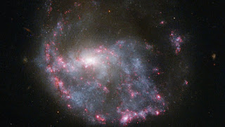 В созвездии Печи телескопом Хаббл обнаружена простреленная галактика NGC 922