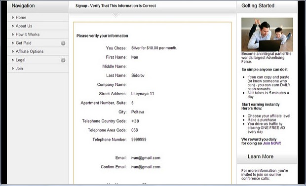 Ваше процветание зависит от того, что вы будете размещать по одному объявлению каждый день. Причем текст объявлений уже составлен и представлены доски бесплатных объявлений, на которых вы будете размещать объявления. Всё это будет в вашем бэк офисе! Согласитесь, приятно быть собственным босом!