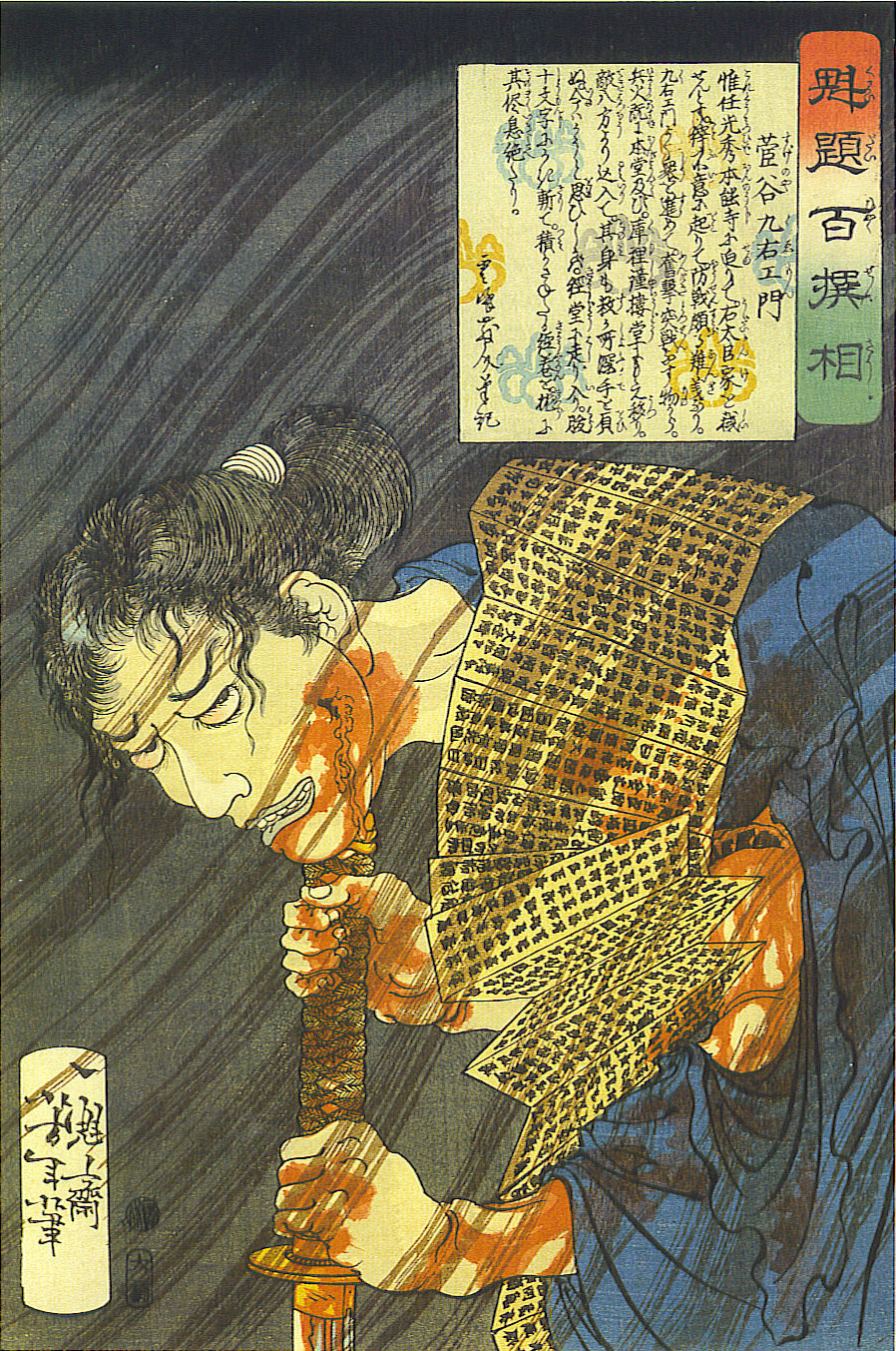 В это же время, совместно с другим учеником Куниёси Утагава - Отиайем, создает цикл "Двадцать восемь историй о насилии".