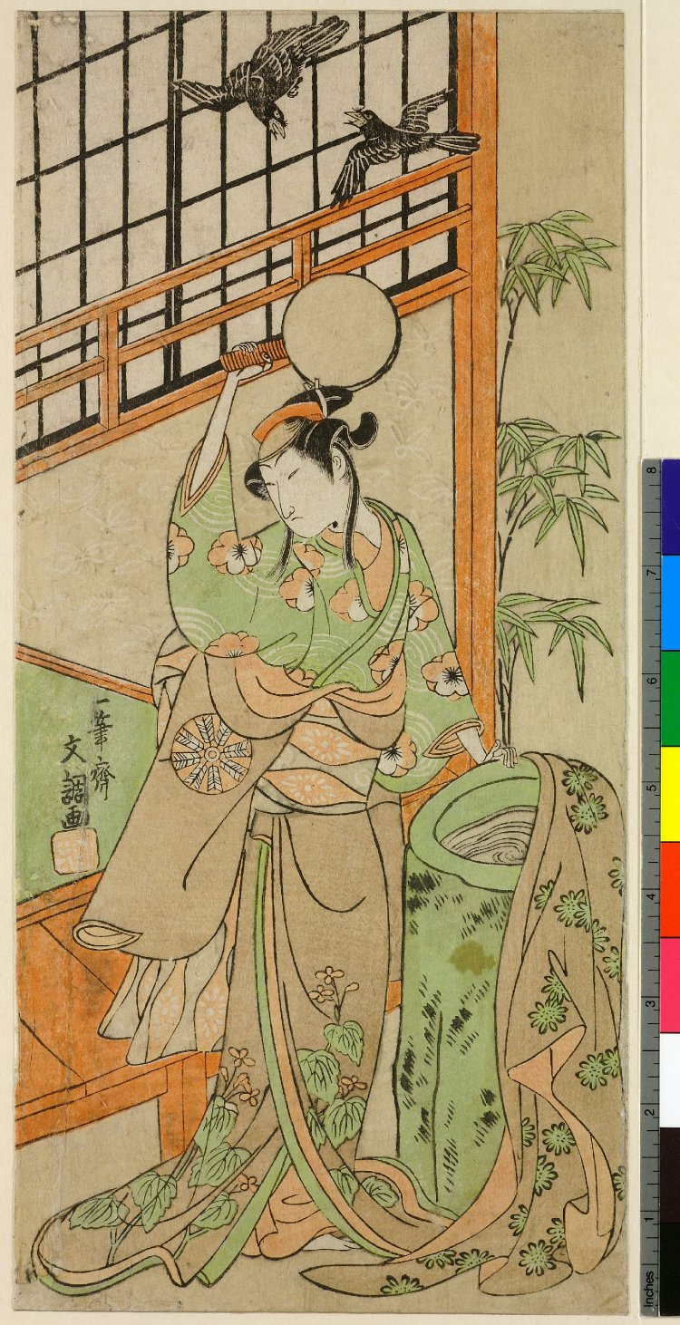 Редчайшее исключительное чувство цвета, элегантный рисунок, стремление к гармонии принесли ему славу утонченного художника, ярко проявившего себя в жанрах бидзин-га и якуся-э.