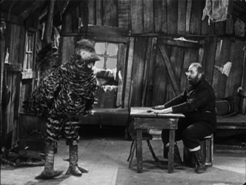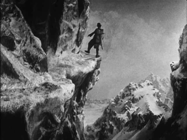 Еще один максисложный эпизод с балансированием лачуги над пропастью. здесь приходилось совмещать съемки в натуральную величину и съемки уменьшенных макетов. Даже сейчас поражает, что переходы практически незаметны.