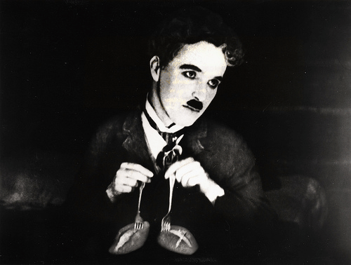 Соратников поневоле терзает голод и черный Ларсен отправляется за припасами. Чарли, во время его отсутствия, варит свои башмаки. Их смакование и обсасывание гвоздей давно стали хрестоматийными. А ведь только этот эпизод снимался три дня, потребовалось 65 дублей, чтобы режиссер был удовлетворен, более или менее.
