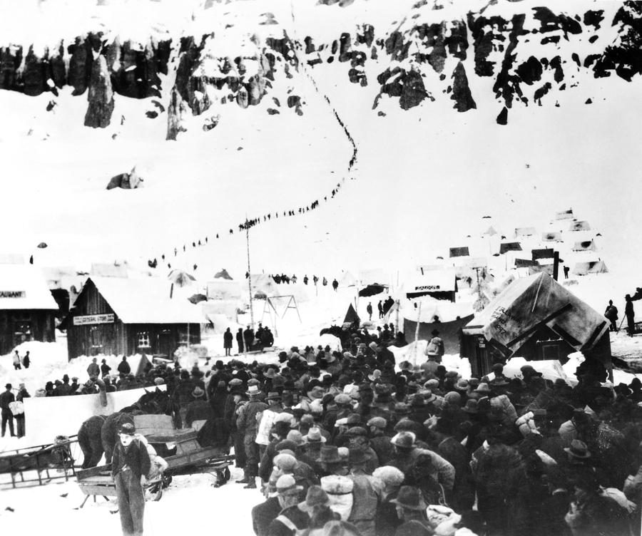 Воскресным утром 1923 года Чаплин разглядывал фотографию с бесконечной вереницей старателей следующих на Клондайк через перевал Чилкут. Эта фотография взбудоражила воображение мастера, тут же возникла масса идей и комедийных ситуаций, постепенно вырисовавшихся в сюжет.