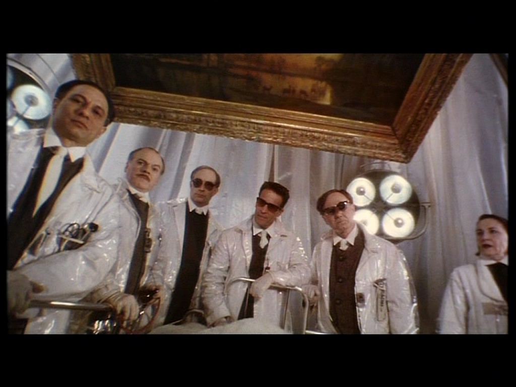 Таков сюжет на поверхности. Но визуальный ряд все чаще наталкивает зрителя на самые противоречивые выводы. Сперва удивляешься, почему в разные временные отрезки мелькают одни и те же лица? Что за странные ведения преследуют героя? Потом вдруг вспоминаешь, что машина времени странным образом напоминает томограф, а ученый совет будущего таким же образом напоминает консилиум.