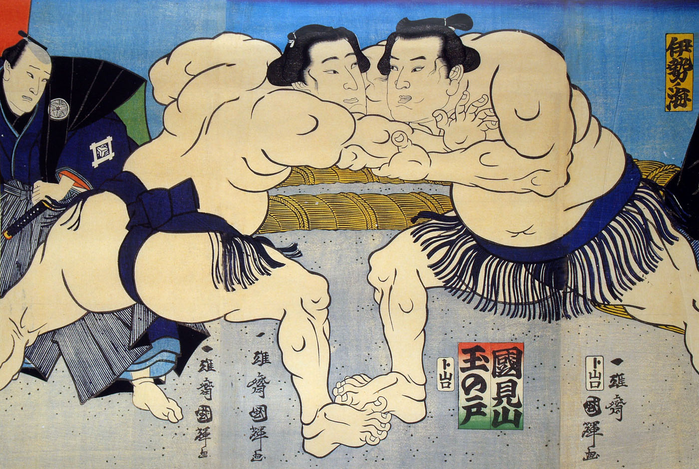 Сухие красители растительного и минерального происхождения смешивались с рисовой пастой, которая закрепляла их, придавая благородную приглушенность цвету и блеск поверхности. Когда в 19 веке в Японию завезли из Европы анилиновые красители, художественный уровень гравюр значительно снизился, а их производство удешевилось.