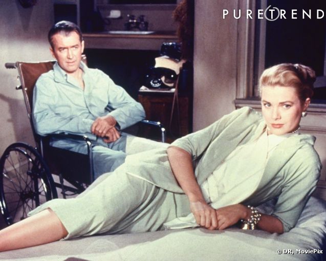 Фоторепортера играет великолепный Джеймс Стюарт. Вокруг него кружит в любовном танце умопомрачительная красавица-модель из Дома мод. Играет ее несравненная Грэйс Келли. Ее наряды - антология высокой моды 50-ых годов прошлого века - способны свалить с ног и мужчин и женщин. А героя Стюарта только раздражают. Как не странно, разглядит он ее только через объектив, подглядывая за ее действиями детектива.