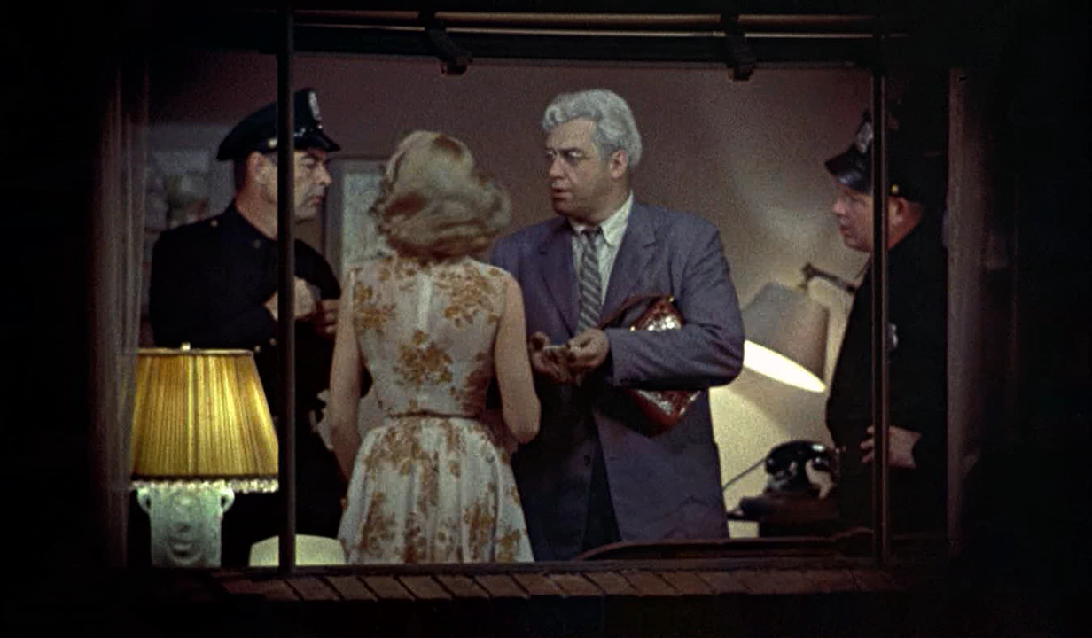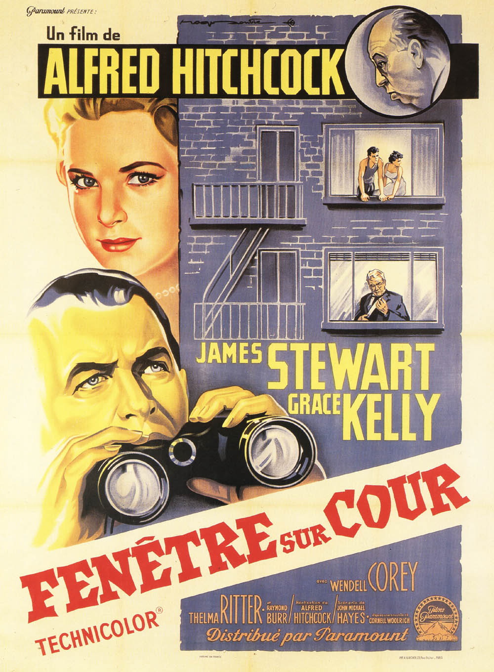 В ролях: Джеймс Стюарт, Грэйс Келли, Тельма Риттер, Рэймонд Бёрр и др.
