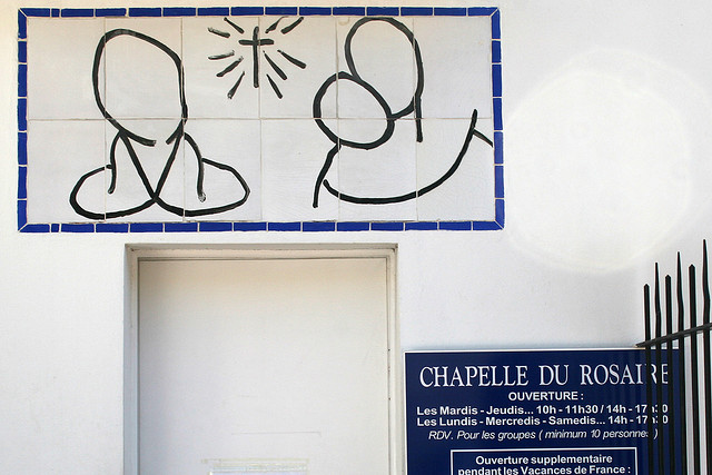 Анри Матисс Часовня Розер в Вансе2013-04-23 11:01:00 (читать в оригинале)![]() Франция времен фашистской оккупации. Нас интересует судьба женщины в белом под черным покрывалом - монахини Доминиканского монастыря - сестра Жак-Мари. Вместе со старым отцом, отставным офицером, она, еще до пострига, бежала из Вандеи в Ванс. У нее есть диплом медицинской сестры и она ищет работу. ![]() Ей сказали о том, что Анри Матисс нуждается в постоянном уходе. Молодая и очень красивая девушка тут же была принята на работу. Ошеломленный красотой и изяществом своей юной сиделки, к тому же интересовавшейся живописью, художник попросил ее позировать несколько сеансов. ![]() Красавица давно решила для себя принять постриг, и если откладывала это решение, то лишь для того, чтобы продолжать ухаживать за Матиссом. В 1947 году беженка из Вандеи стала послушницей Доминиканского монастыря. ![]() Мать Жилле, настоятельница Фуайе Лекордер - санатория, где находились на излечении молодые девушки, которым угрожал туберкулез, решила восстановить часовню, уничтоженную пожаром. ![]() Рассказывая Матиссу о затее настоятельницы, Жак-Мари показала художнику акварельный эскиз будущего витража. Идея не просто восстановления, а строительства часовни буквально захватила Матисса. Он поговорил с настоятельницей и получил согласие. ![]() Лежа в постели, превозмогая терзавшие его боли, Матисс напряженно работал. Его большие альбомы заполнялись рисунками, проектами. эскизами скульптуры, живописи, витражей, облачения священнослужителей. Каждый день он демонстрировал пять или шесть листов с новыми рисунками. ![]() Белый куб, прилепившийся к склону холма. Простые внешние формы часовни строги и исполнены чистоты. Узкие высокие оконные проема небольшого нефа, большие и широкие на хорах, черепица в романском стиле, покрытая синей и белой глазурью, ажурный рисунок креста из кованного железа - производят впечатление эстетической завершенности, совершенства. ![]() Внутри капелла выполнена в виде большого зала с углублениями, служащими хорами для монахинь. В углу, на площадке наискось, установлен алтарь, обращенный одновременно и к монахиням и к верующим, отличающийся строгостью и аскетизмом. Расположенные на нем светильник и распятие, удивительно органичны и не ломают линию. Потрясающее освещение создается тремя цветами - чистейшим синим, ослепительно желтым и ярко-зеленым - витражей, простой и строгий рисунок которых дает ощущение духовной полноты. ![]() Ну и наконец, большие композиции на стенах. Цвет отсутствует. Черная линия на белой керамической поверхности. Черный и белый - цвета Доминиканского ордена. Аскетичная отрывистая линия производит впечатление предельной открытости, практически обнаженности. ![]() Изображение святого Доменика больше натуральной величины, сведено к овалу лица и складкам рясы; силуэт мадонны с младенцем ступает по чуть намеченному полю цветов. "Крестный путь" словно перенесен из альбома набросков, требуется долго вглядываться, прежде чем постигнешь его совершенство. Требуется напряжение духовной мысли. И молитва, монашеская молитва, для которой часовня и возводилась. Для такой молитвы не нужно пышное убранство, поражающее воображение. Она сосредоточена, строга и чиста. ![]() Есть еще восхитительной красоты двери исповедальни, напоминающие ирландское кружево. И очарование з