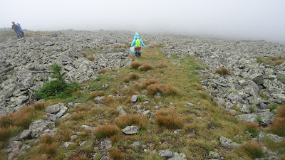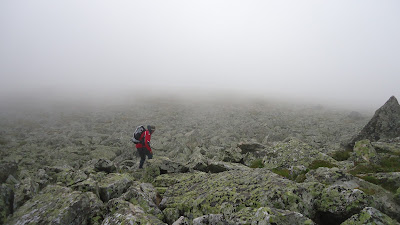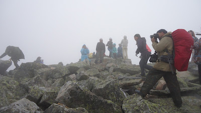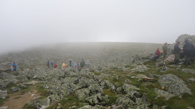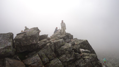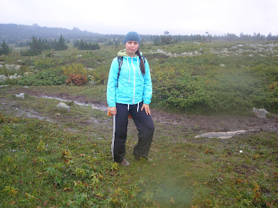 Очень увлекательно лезть вверх по камням, балансировать на качающемся камне, обозревать окрестности. И вот мы вышли на ровную плоскую вершину. Туман усилился и не было видно нашу человеческую цепочку... фигуры исчезали в тумане... Нашим взорам открывались маленькие каменные прудики, заросшие мхом камни.. Дождевая вода в этих прудиках божественной чистоты и вкусноты... Ой как вкусно!!!