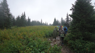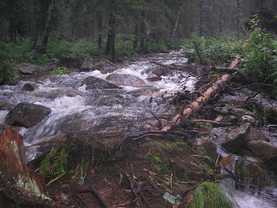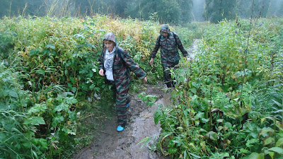 Часть пути мы шли по сплошной текущей воде...и по сплошной грязи... месиво земли, камней, травы, мха... хорошо... Оказалось, это очень весело, игриво, шаловливо, как в детстве. те, кто не набегался в детстве - тот наверстывал... идешь хлюпаешь резиновыми сапожками... хлюп-хлюп... просто детская медитация... воспоминания из детства... легкость...непринужденность...