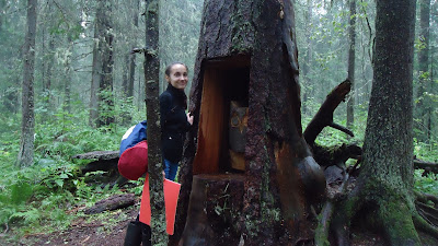 А природа удивляла своими изысками, причудами... То гигантские мухоморы... то деревья невиданной формы...то речка-гремушка под камнями... то древние елки, сосны... потом черника, море черники... вкусная, спелая... невозможно наесться...