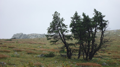 Иремель высотой 1500 м над уровнем моря. Сама каменная верхушка занимает 500 м крутого подъема. А перед верхушкой альпийские луга и тундра. КРАСОТА! Открывается вид на другие вершины. Иремель оказывается, как в лепестках других вершинок, как в защите, и как лотос раскрывается на рассвете - вначале Семь братьев, потом Малый Иремель, Зигальга, Жеребчик.