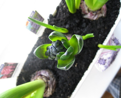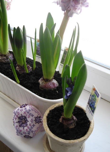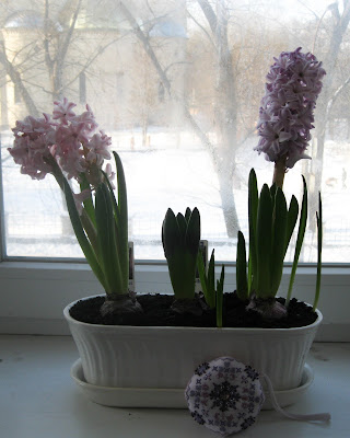 Пока за окном лютые морозы - у меня на окне зацвели предвестники весны, гиацинты и крокусы. Вот такие они были 14 января, только начали пробиваться
