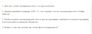 Блоговедение: личная гигиена при копировании2012-11-18 11:00:00 (читать в оригинале)![]() Проснувшись, идем умываться и чистить зубы, а придя домой первым делом моем руки... Все эти процедуры - само собой разумеющиеся. И кроме своих прямых назначений выполняют еще несколько функций: нам самим позволяют чувствовать себя увереннее, да и окружающие нас люди в первую очередь оценивают нас по опрятности. Так давайте же будем опрятны не только по отношении к себе, но и к своему блогу. Вы, наверное, уже обращали внимание, что при копировании текста с другого сайта к себе в блог, этот текст отображается совсем не так, как Вам хотелось бы. Для примера забила в поисковике "копирование текста" и с четырех страниц скопировала и вставила сюда по фразе: 1. Для того, чтобы скопировать текст, его надо выделить 2. Дальше нажимаете клавиши «Ctrl + C» (это означает, что вы скопировали текст в буфер обмена) 3. Чтобы вставить скопированный текст в другую программу, перейдите в нужную программу и воспользуйтесь командой «Вставить». 4. Вопрос в том, как сделать так, чтобы фон не копировался? Мы видим, что текст вставился со своим родным форматированием. Но у Вас другой шрифт, другой размер, цвет, фон... И начинаем мы править указанный текст под свои особенности. Но не всегда все можно поправить в визуальном редакторе, иногда надо залезть и в html-редактирование, которое выглядит так ![]() А тут невзначай удалишь какую-нибудь важную буковку, скобочку, кавычки, и все... можно сообщение набирать по новой))) А оно нам надо? Есть более простой и понятный способ избавиться от форматирования источника. 1. Копируем текст привычным способом. Я копирую прямо от сюда ![]() 2. В любой папке или на пустом месте рабочего стола создаем новый текстовой документ при помощи блокнота: правой кнопкой мыши щелкаем "Создать" - "Текстовой документ" ![]() 3. В созданный документ вставляем скопированный текст. Блокнот (либо другой простейший текстовой редактор, я пользуюсь bred) не поддерживает навороченное форматирование, поэтому наш текст автоматически от него очистится ![]() 4. Копируем очищенный тест и вставляем его в нужное место ![]() ![]() 5. Любуемся полученным результатом. Текст стал родным)) Вот что получилось у меня: 1. Для того, чтобы скопировать текст, его надо выделить 2. Дальше нажимаете клавиши «Ctrl + C» (это означает, что вы скопировали текст в буфер обмена) 3. Чтобы вставить скопированный текст в другую программу, перейдите в нужную программу и воспользуйтесь командой «Вставить». 4. Вопрос в том, как сделать так, чтобы фон не копировался? Последний вопрос мы решили))) Здоровья и привлекательности вашему блогу!