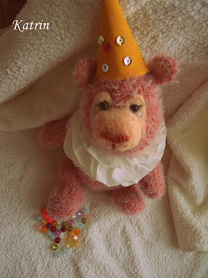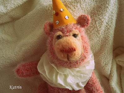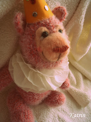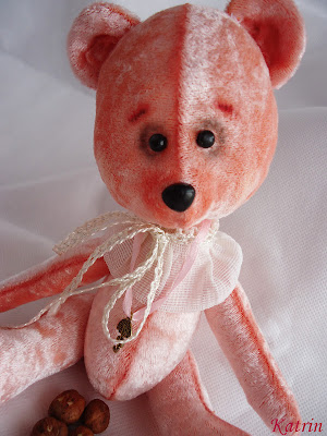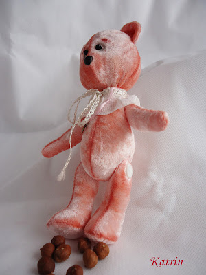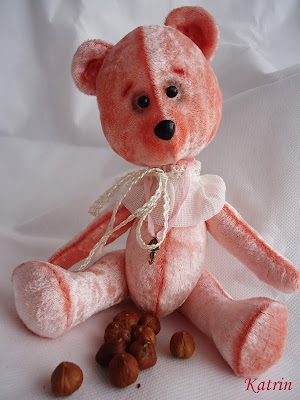 2012-11-02 11:10:00 (читать в оригинале)Мишка сшит из нежного плюша, тонирован. Голова на шплинтовом креплении (крутится во все стороны), лапки тоже подвижны, но на пуговичном креплении, самостоятельно не стоит.