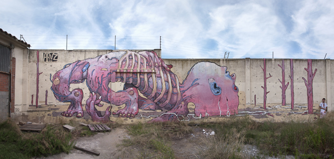 Браться близнецы Густаво (Gustavo) и Отавио (Otávio) Падольфо (Pandolfo) Osgemeos , которые работают под псевдонимом Osgemeos являются одними из самых ярких и узнаваемых , бразильских уличных художников. Эти два ума переполнены всеми цветами и вкусами воображения. Источником вдохновения для многих их рисунков и магических басен является то , каким образом Густаво и Отавио задумываются о своей внутренней реальности и фантазии , которые их окружают. Каждая маленькая деталь которая проходит через их воображение , отображается в их работах. Впервые браться столкнулись с граффити в далёком 1986 году , когда они жили в центральном районе Сан-Паулу, где и провели своё детсвто и юность . При появлении в Бразилии первых течений хип-хопа , отражение этой культуры сражу же появлялось на стенах микрорайона. Во вселенной их персонажей в основном царит жёлтый и красный цвет , которые в итоге стали их визитными карточками , делая их стиль уникальным и узнаваемым.