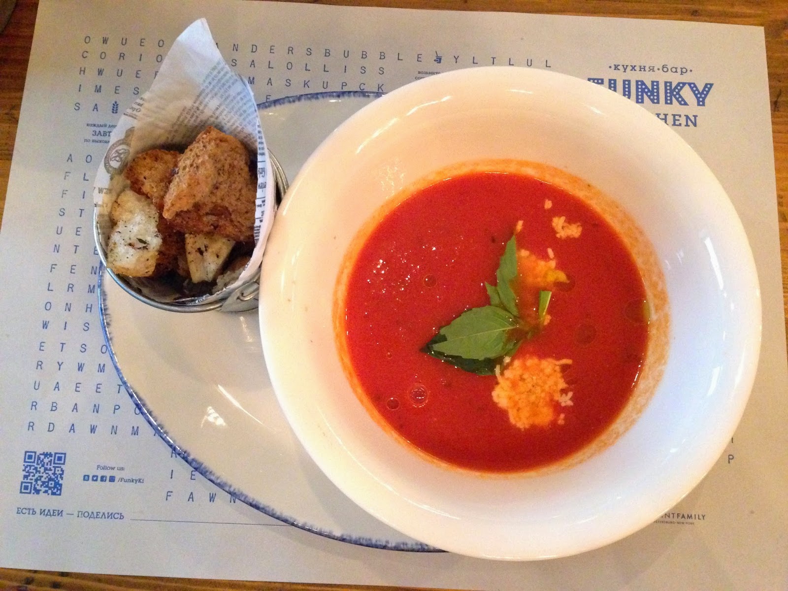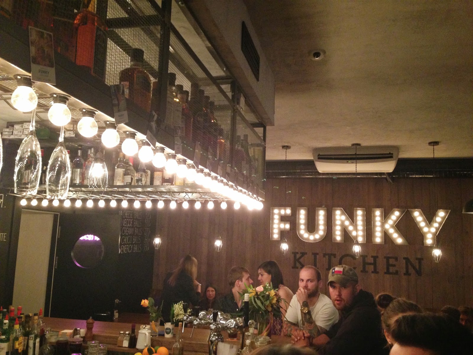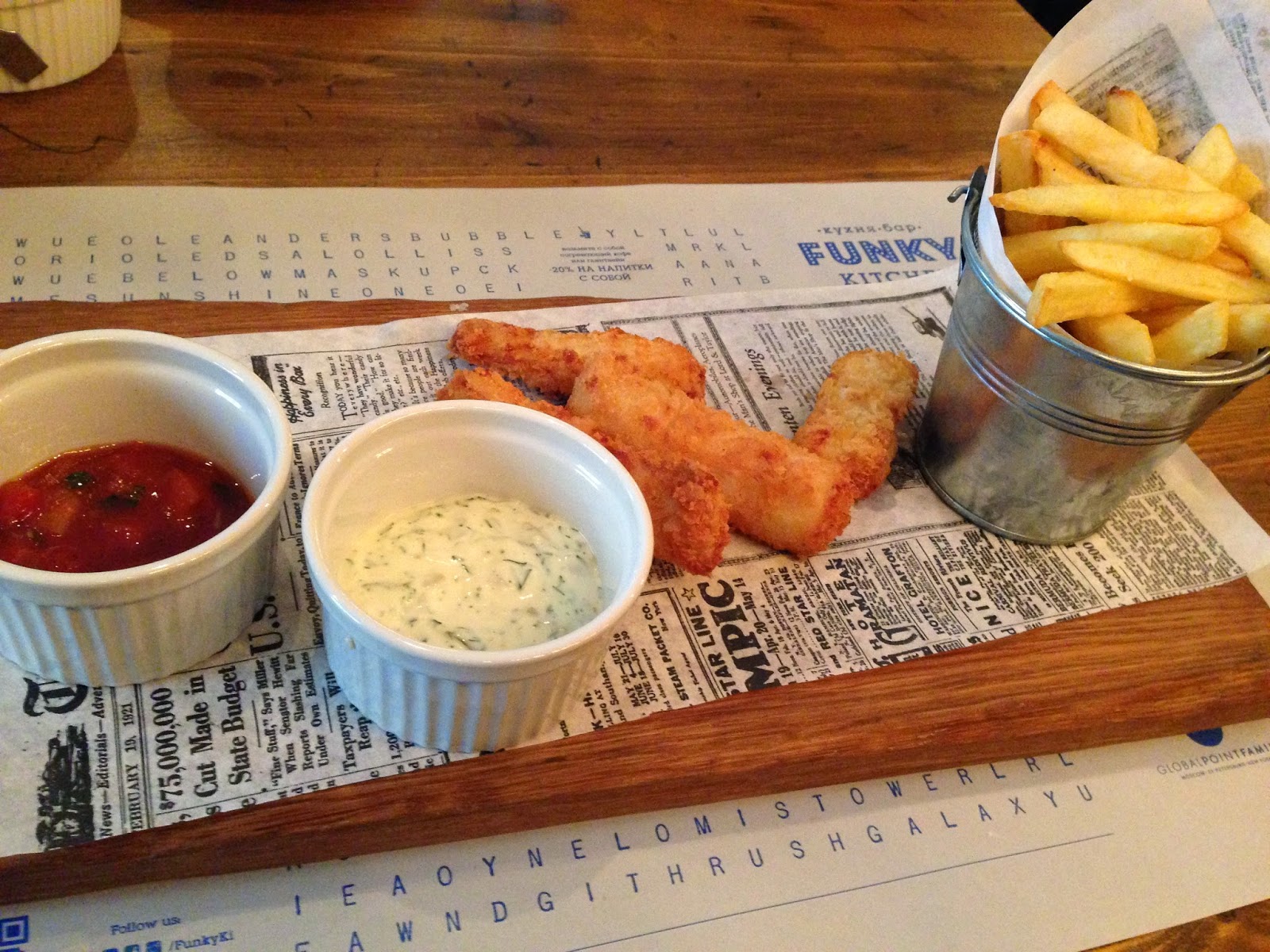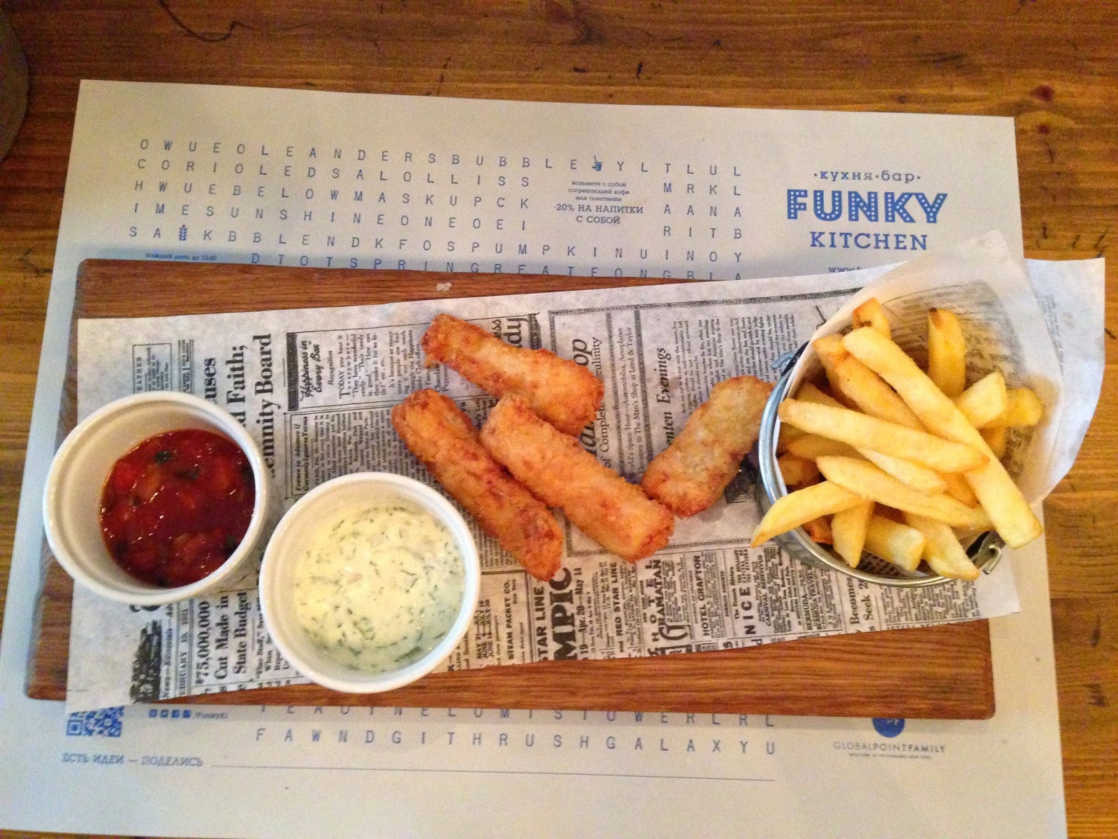 В общем, так как настроение у меня было плохое, находилась я в районе Большого Проспекта, П.С., желудок мой исполнял Токату и фугу ре минор Баха, решила я зайти в одно заведение, корень от названия которого уже обещал сделать меня чуть веселой, а в оригинальном «звучании» имя сего места идеально подходило для моей сферы деятельности. Так меня занесло в Funky Kitchen — шибко модную кухню, да прибудет сила великого Google Translate!